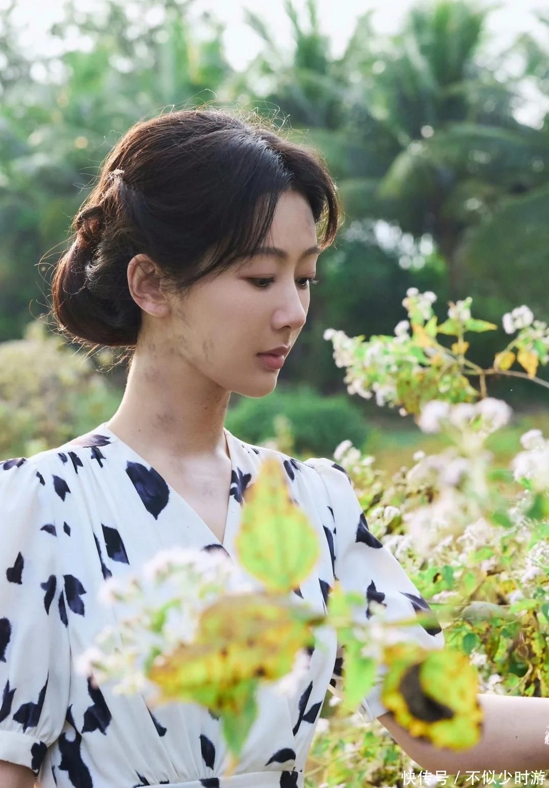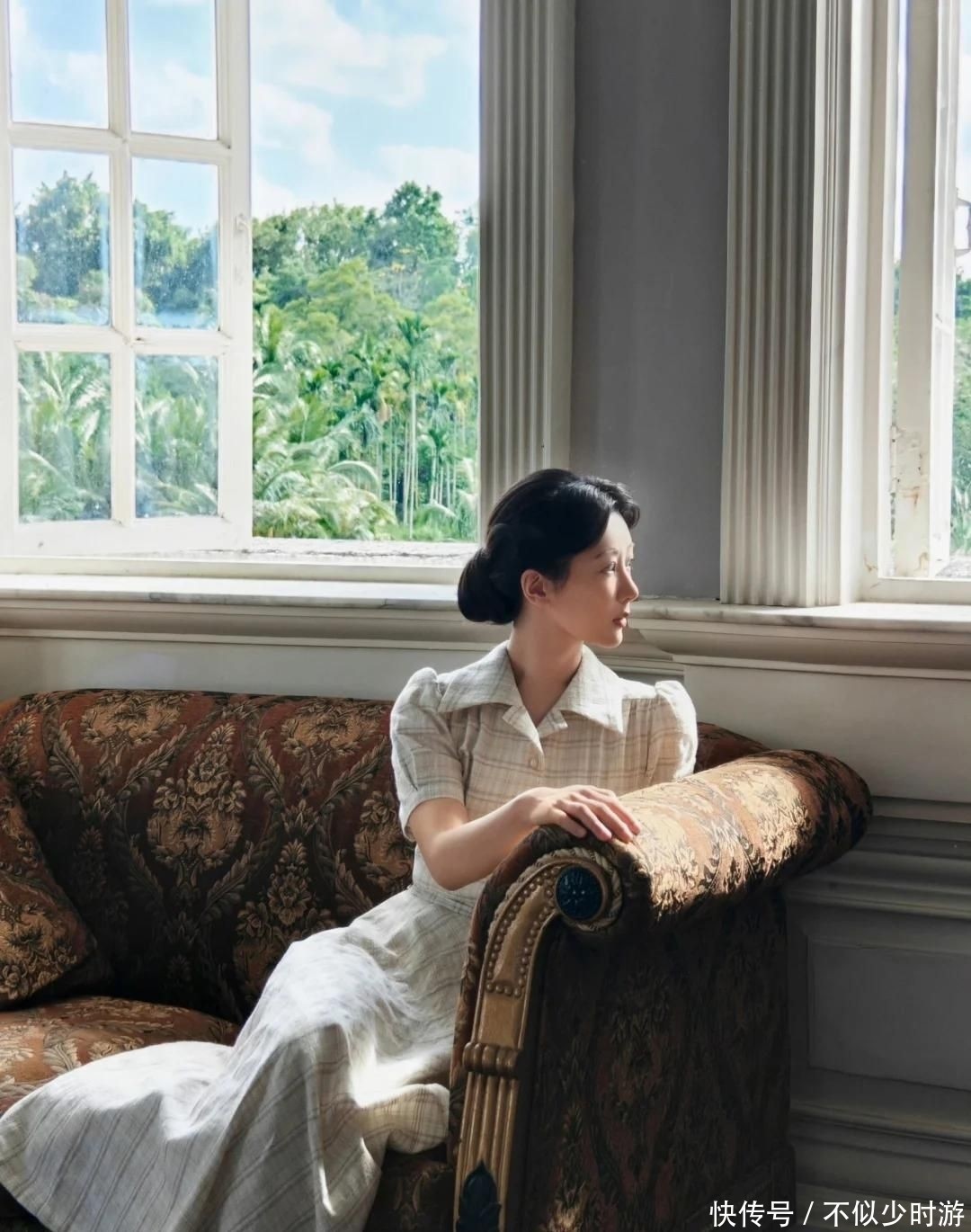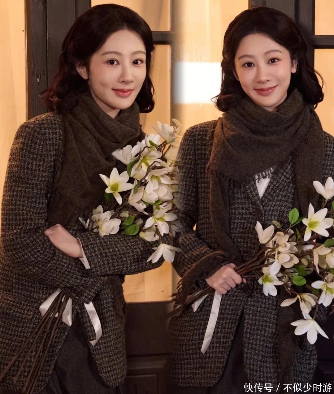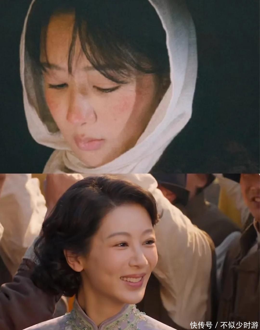 在造型层面,她彻底放下明星光环,采用紧贴头皮的复古卷发、素净淡雅的改良旗袍、不加修饰的自然妆容,严格依照现存历史影像资料进行1:1复刻,拒绝刻意减龄或美化,专注捕捉董竹君少年老成、一生笃行的独特神韵。