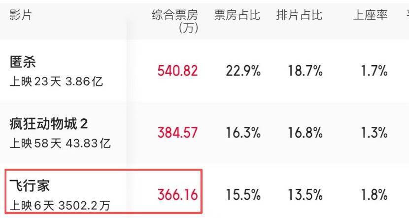 相比之下,《飞行家》要好了不少,可上映6天,票房也才3500多万,单日票房则稳定在300多万,想要翻盘基本不可能。