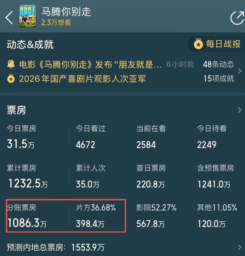 结语目前来看,《马腾你别走》的票房已经无力回天了。